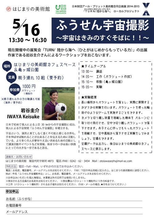 Mail:件名「ふうせん宇宙撮影申込」とし、お名前、電話番号、メールアドレスをお知らせください。