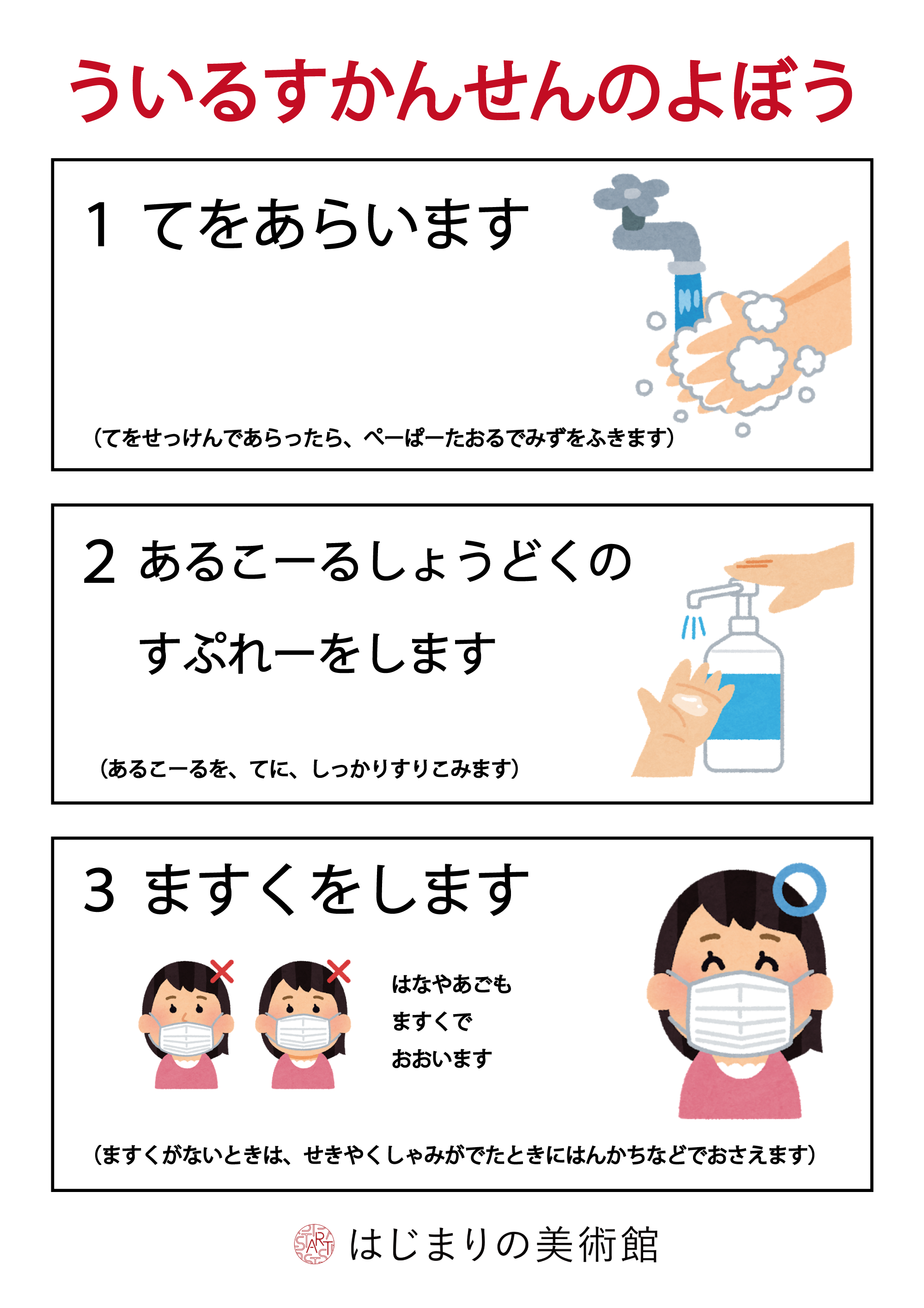 新型コロナウイルス感染症(COVID-19)対策に関して、はじまりの美術館では以下の対策を行なっております。