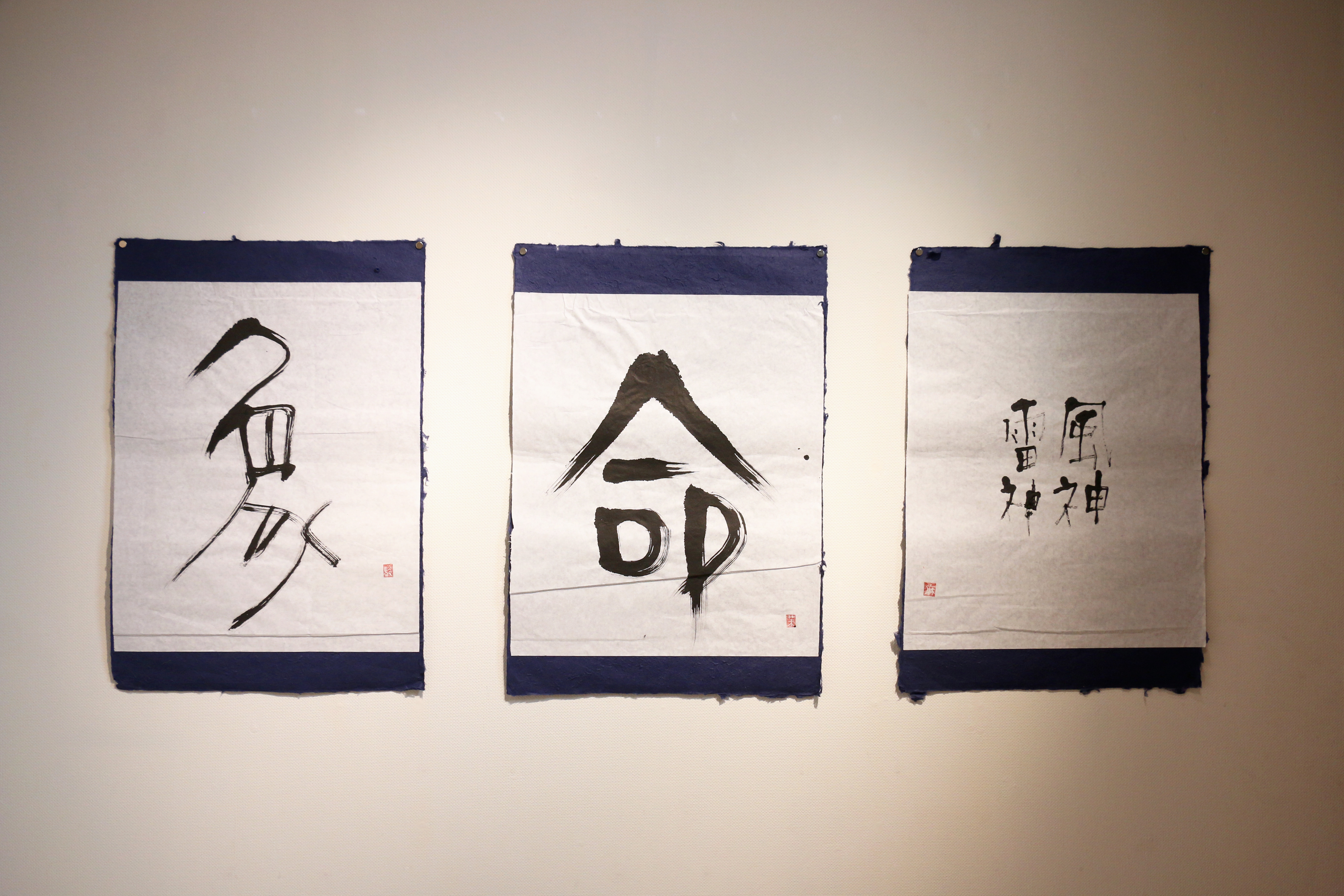 本展は書の出品も多い。 書の良し悪しの評価は難しい。 意味の伝達が文字の最大の役割だが、漢字は起源が象形文字であることもあり、書く際に造形的関心が強く働く。意味と造形、書く者の想いがどう溶け合っているか、そこが書の醍醐味である。 あらためて書の良し悪しは難しい。 筆法の巧拙はさておき、障害の有無を読み取ることも難しい。 だが、言い換えれば文字の魅力のみを作品審査の基準とすれば良いということ。 村上駿仁さん、茉奈美さん、麻莉奈さんたちの作品は3点1組として評価した。各作品それぞれ魅力的だが、違うタイプの3点が揃うと一層輝く。 プロかと思わせる勢いの「風神雷神」「象」、正直で真っ直ぐな「命」。 素直に心ひかれる作品でした。