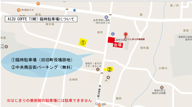 なお、はじまりの美術館駐車場は、当日会場となるため